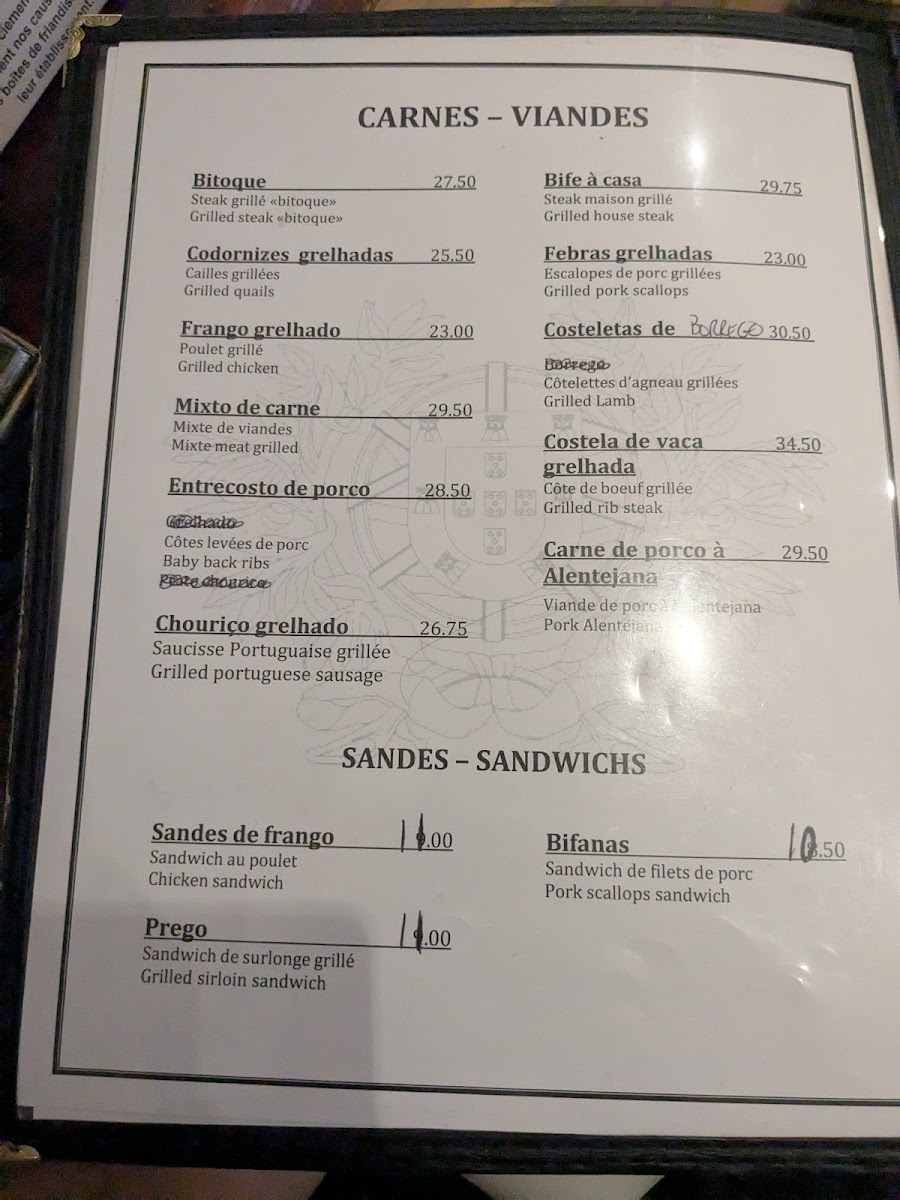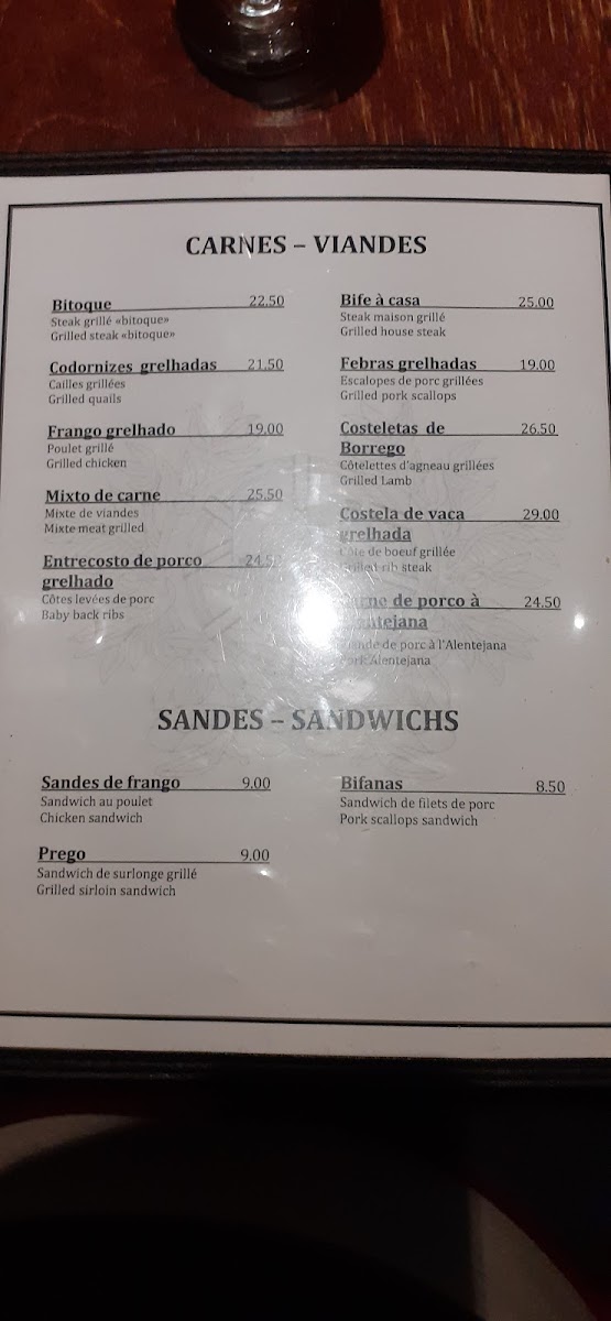 Welcome to Restaurant Casa Alentejo, where our menu is a sublime celebration of traditional Portuguese cuisine. Let your taste buds travel to Portugal with our menu highlights, including succulent Grilled Chicken, flavorful Bife à Casa, tender Mussels, and mouthwatering Maquereau Grilled Fish. Don't miss our must-try specialties like the crispy Bread, the savory Croquettes De Bacalao Fish Cakes, the garlicky Garlic Shrimp, and the perfectly Grilled Cod Fish. Whether you fancy Chicken Piri Piri, Seafood Rice, Febras Grelhadas, or Lulas, our menu has something for everyone. Be sure to also try our Chicken Sandwich, Poulet Épicé, Poulet Frango, and Sandwich Au Poule. Indulge in a culinary journey to Portugal at Restaurant Casa Alentejo!